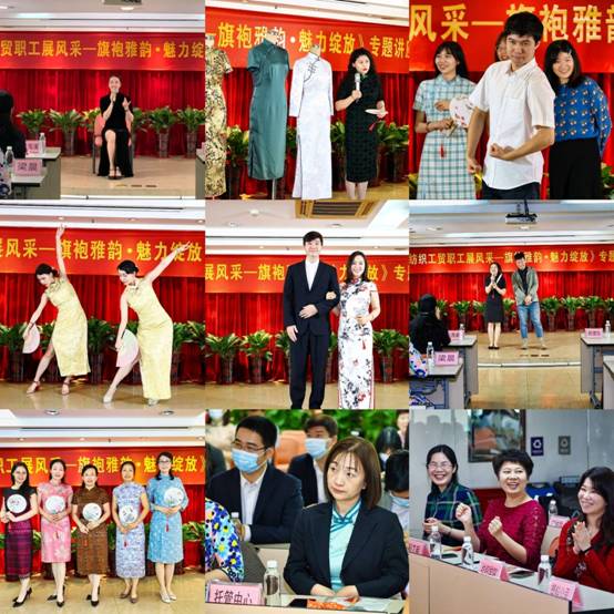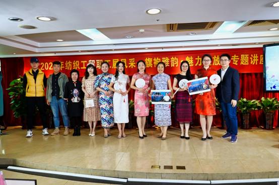 南碧老师曾获得2019魅力旗袍中国行广州赛区形象代言人和终极总决赛亚军,她从旗袍美学常识和女性穿旗袍时的形态、神态、仪态以及上镜技巧等角度,以身示范了“不惧流年,优雅绽放”的女性典雅,并通过现场互动,指导学员如何通过旗袍展示女性的优雅和魅力。此外,公司工会还邀请了纺织服装学院服装艺术系的温海英副教授分享了学院优秀的旗袍作品,让现场的学员大开眼界,不禁感叹:一针一线真工夫,千锤百炼出精细。