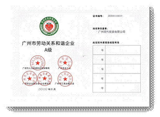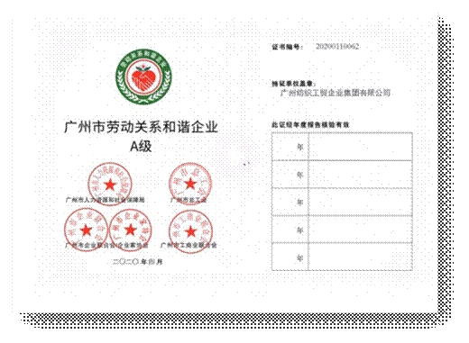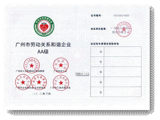 有限公司及属下多家企业荣获2019年度“广州市劳动关系和谐企业”称号