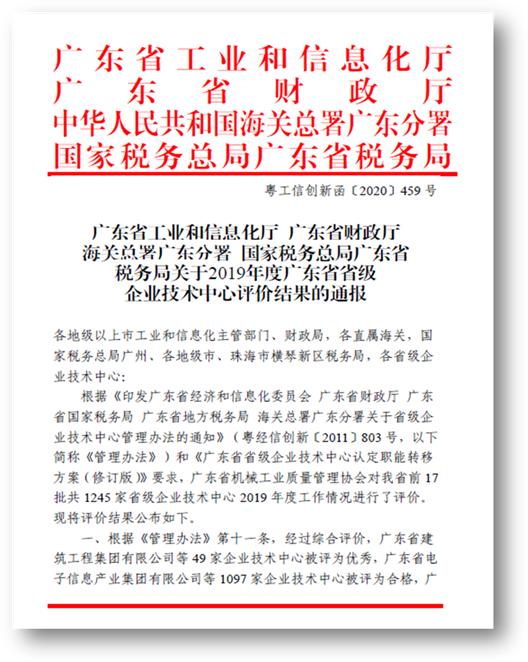 顺利通过“2019年度广东省省级企业技术中心” 评价。