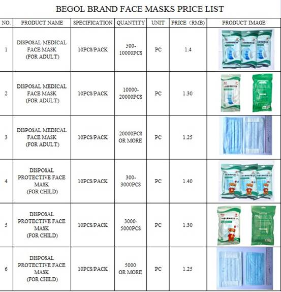 BREAKING NEW LAUNCH!BEGOL BRAND FACE MASKS FROM GUANGZHOU BEGOL HOLDINGS LIMITED