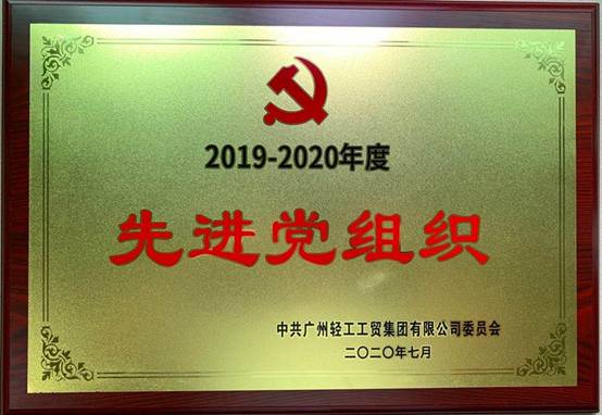 党委荣获广州轻工集团2019-2020年度先进党组织称号