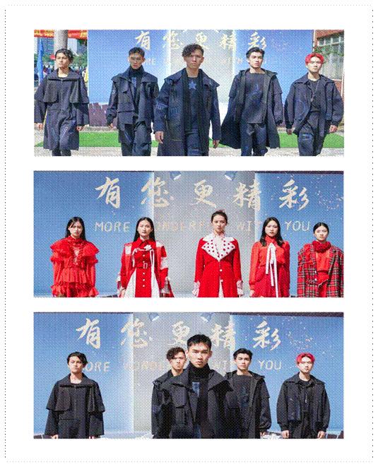 同学们在T台前合影留念