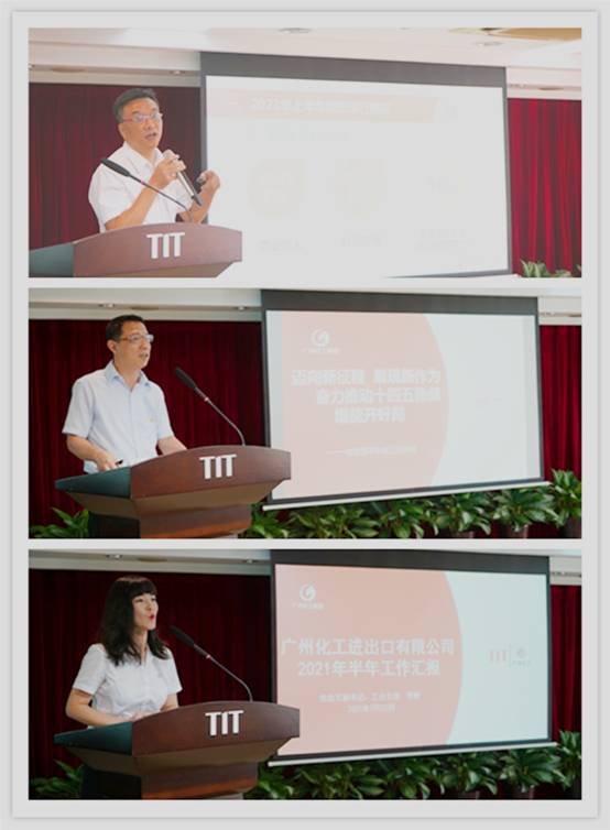 塑料公司、国贸部、广州化工的企业代表向大会汇报了上半年的经营情况。上半年,三家企业紧抓市场需求,坚持立足主业,防范经营风险,不断推进业务整合和转型,均保持良好的发展势头,实现营收与利润的双增长。