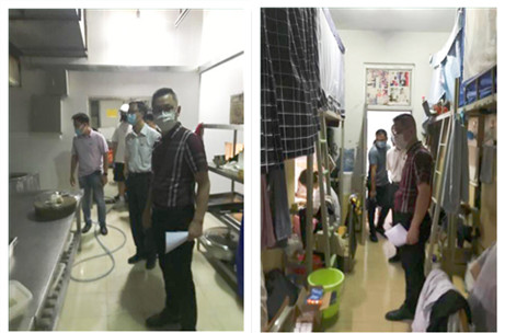 检查组一行检查饭堂及学生宿舍