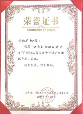 9月28日,“讲党史 话初心 践使命” 广州轻工集团团干部讲党史团课大赛在虎头公司举行。玩彩网·「中国区」官方网站 团委派出国贸部团支部宣传委员陈一嘉参赛,她所讲授的课程《人民音乐家——冼星海》在13个参赛单位中脱颖而出,获得了一等奖的好成绩。