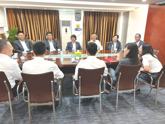 党委书记、董事长简玮仪带队到场视察直播情况,为广州化工加油鼓劲。