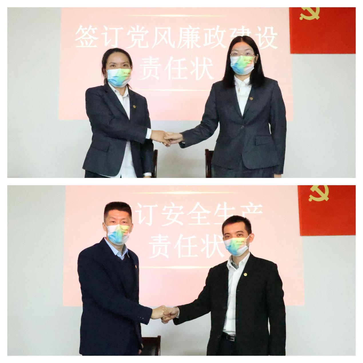 会上,公司领导与部门代表分别签订2023年度党风廉政建设责任书、安全生产责任书。