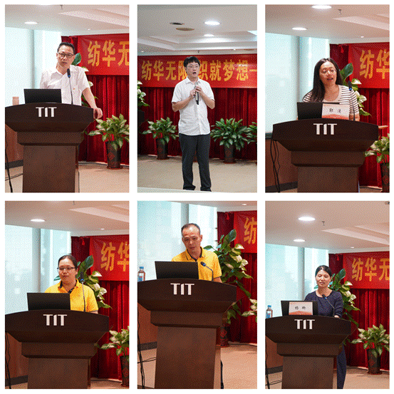在业务课程模块,纺出公司副总经理陈文明进行纺织品及进出口流程知识地讲授。在一个半小时的时间里,陈文明从纺织品的释义、中国纺织服装进出口贸易趋势、公司纺织品业务情况到国际贸易的专业术语、服装出口的业务环节以及公司系统应用做了详尽地讲解。化工公司钟高怀妙趣横生地介绍了化学品基础知识、公司发展及进出口产品情况。塑料公司郭漫细致地介绍了塑料公司发展情况及主营业务。利工民公司陈慧、朱佛令分别就利工民的百年发展、汗衫47道独特工序、主营产品、新品牌定位和全渠道营销模式进行了生动地讲解。广纺检测公司杨柳详细介绍了检测公司的发展历程、公司荣誉和检测能力。