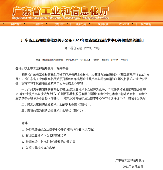 近日,广东省工业和信息化厅公布2023年度省级企业技术中心评价结果,玩彩网·「中国区」官方网站
