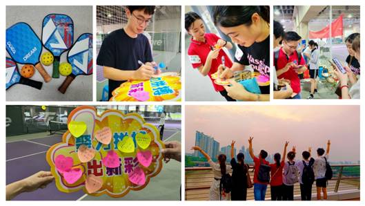 匹克球作为一种结合了网球、羽毛球和乒乓球元素的新兴运动,深深吸引了这群喜欢运动和探索的年轻人。经过教练动作示范和悉心指导,他们很快掌握了臂、腿、腰的协调发力技巧,从“零接触”迅速通关“巧发挥”。在 “一球定胜负”、“最佳搭档”和“限时垫球”等趣味匹克球友谊赛环节中,欢声笑语伴随着大汗淋漓,他们和球场上新认识的小伙伴共同拼搏、相互鼓励,享受团队合作的竞技乐趣。