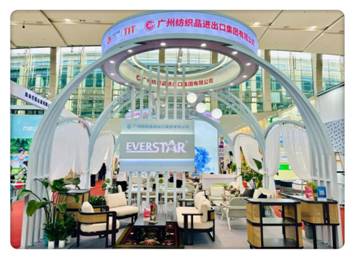 广州纺织品进出口集团有限公司(以下简称“纺出公司”)携自主品牌“EVERSTAR”最新研发设计的户外家具产品再度亮相展会。本届广交会,纺出公司展位风格独树一帜,以充满异域特色的圆顶帐幕设计成为展馆内的一大亮点,开展首日备受关注,宾客满盈。凭借展位绿色优质用材以及新绿展品,纺出公司再度入围第136届广交会绿美展位名单!