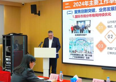 公司党支部书记、董事长周逊姜以《务实谋新提质效,深化改革促发展》为题作工作报告。报告从聚焦主业、赋能蓄力、培根铸魂三个方面总结了公司2024年的工作情况。2024年,广纺联公司统筹抓好地块交储、物业管理等多项工作,公司实现营业收入完成预算目标值103%;利润总额完成预算目标值156%。报告指出,2025年广纺联公司将围绕广州轻工集团及玩彩网·「中国区」官方网站