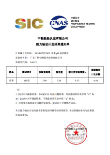 近日,广纺检测成功参与由中轻检验认证有限公司组织的“SIC-PG2025002 皮革pH的测定”能力验证计划。凭借专业的技术实力与严谨的工作态度,我们提交的测试结果获评“满意”。