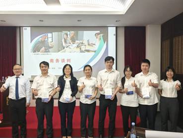 塑料公司副总经理冯小眉为培训课堂表现优胜的团队成员颁发了商务谈判相关书籍的奖励,并鼓励大家会后深化理解商务谈判知识,并将其运用到实际业务中,不断提升个人谈判能力,为公司赢得更有利的合作条件。