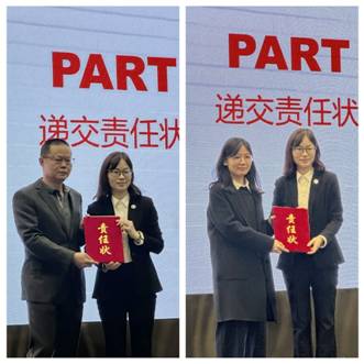 接着,事业部及职能部门负责人分别向朱剑碧董事长递交了2026年度经营目标、维稳综治、安全生产、环境保护等责任书。