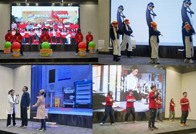 会议在欢乐的氛围中进行最后一项议程——纺出公司春节文艺表演。节目《旗开得胜》以霸气的鼓声震撼开场;小品《织梦同心,微力无边》调侃出纺出人工作中的欢乐点滴;小品《不一样的互联网体检》以诙谐的方式演绎了当代人的“数字烦恼”;《马到成功不犹豫》用斗志昂扬的歌声表达了对未来的憧憬。
