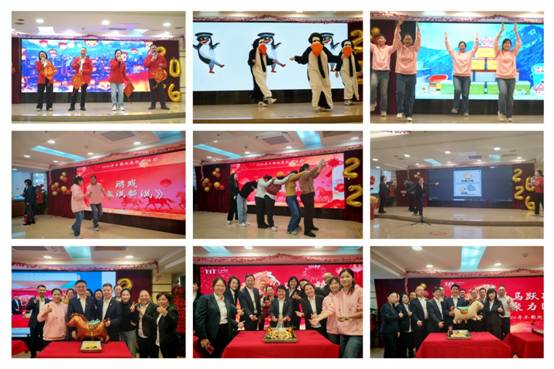 本部“马跃新程聚力同行”联欢会场内,歌舞飞扬、掌声如潮。受表彰的先进集体和个人登上荣誉舞台,他们用攻坚克难的奋斗故事诠释“拓新精神”。在节目表演环节,《相亲相爱》《我相信》《企鹅舞串烧》等节目以激昂旋律点燃全场;趣味烧脑比拼游戏展现纺织人“干劲十足”的精气神。最富年味的当属“粤式年味工坊”,比拼队员围坐一堂,揉面、捏角、炸制油角与蛋散,金黄酥脆的香气中,“自己捏的油角,咬一口都是奋斗的味道!”