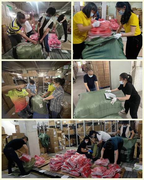 收到广州轻工集团要求定制5万件印有“我是共产党员”字样的志愿红马甲任务后,公司党委高度重视,第一时间指导利工民组建党员团员突击队和生产专班,制订详细工作计划及分工。一周内出这么大批的货是一个不小的挑战,而且马甲货源还分散在广州、佛山及浙江一些城市的仓库中。如何才能以最快速度调集货源、如何根据需求安排好每日出货量、如何精准配送到每条街道……这些现实的问题都摆在了工作专班面前。面对这些问题,利工民总经理郑力强迅速理清思路、靠前指挥,一边率领工作专班与上级部门、供应商保持密切联系,对接好各个工作环节;一边积极做好内部人员调配工作,确保高效完成出货任务。
