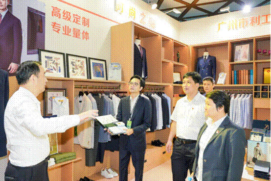 在共建活动中,大家来到广东时装周的利工民主题展位前,深入了解利工民服装定制业务开展情况。广东省服装服饰行业协会党支部书记刘岳屏介绍了目前广东服装定制的整体情况以及相关智能制造企业情况。双方就如何加强资源共享,促进服装定制服务做强做大,助力广东定制“出圈”“破圈”进行了交流探讨。