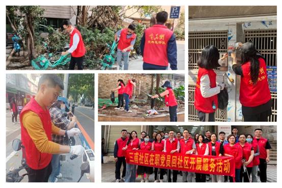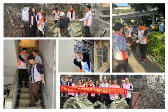 组建党团员志愿服务队,发扬“不怕苦、不怕累”的雷锋精神,通过与街道合作,开展社区环境卫生整治志愿服务活动。在越秀区大塘街社区,志愿者向积存多年杂物的老旧楼房天台发起“保洁总攻”。采用“垃圾分类+多人协作”方式,历时两小时奋战,志愿者们徒手清除搬运五大袋垃圾。最终天台换新颜,居民街坊乐称赞。在荔湾区金花街社区,志愿者化身“环境守护者”,对社区内的卫生死角、绿化带、楼道等区域进行全面清理,规范摆放随意停放共享单车以及清除墙面、电线杆上的小广告,美好社区共守护。